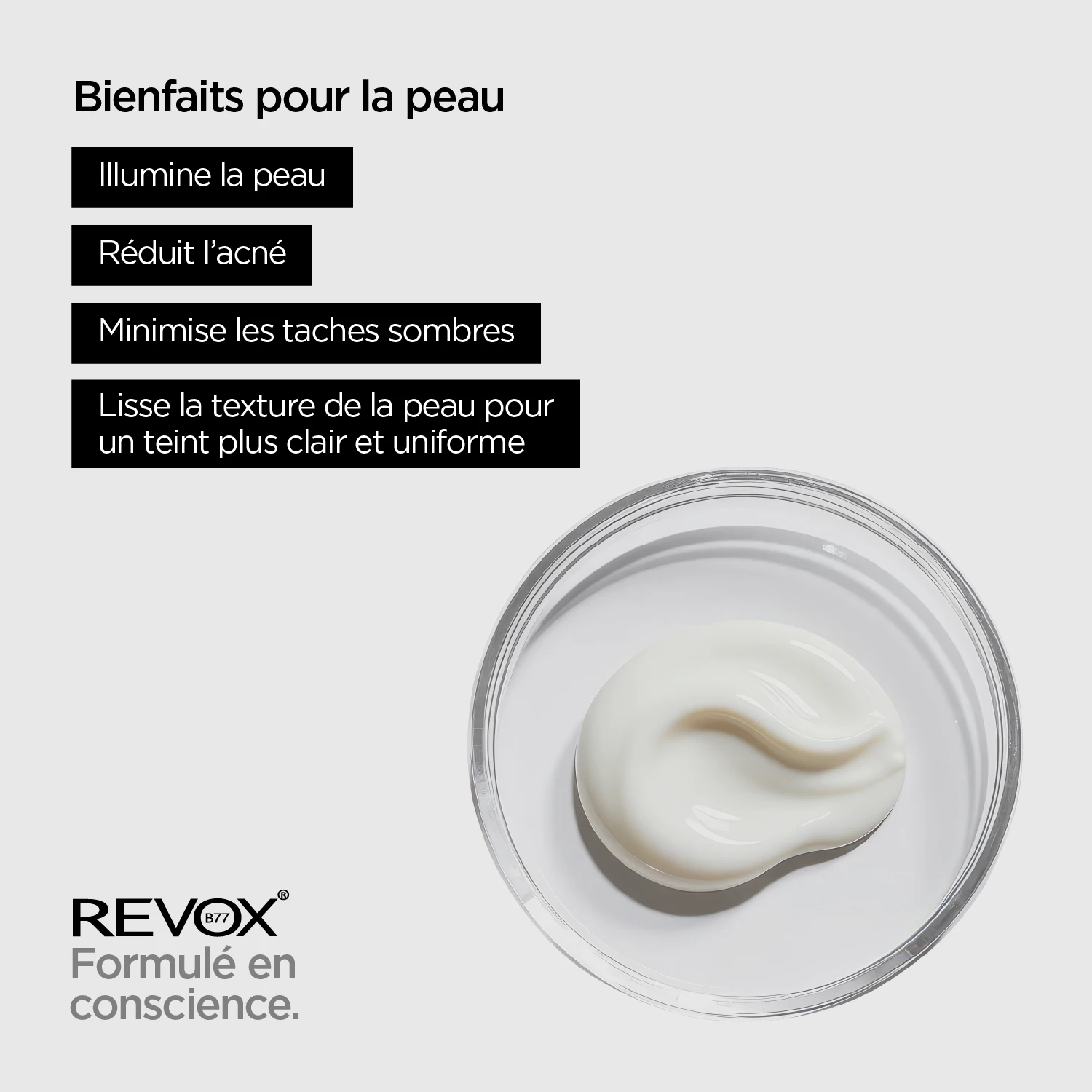 Combinez avec : REVOX B77 JUST Salicylic Acid 2% pour uniformiser la texture rugueuse de la peau, ou suivez avec REVOX B77 JUST Blend Oil pour nourrir la peau sèche.