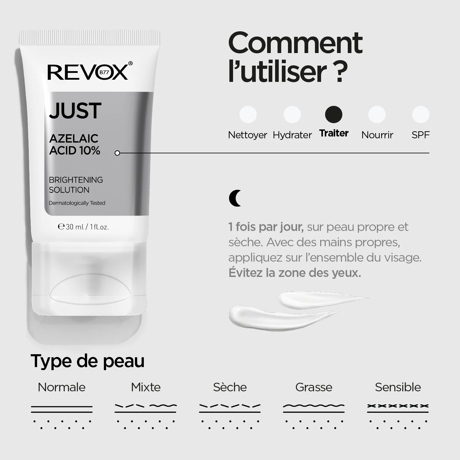 REVOX B77 JUST AZELAIC ACID 10% est une solution éclaircissante pour le visage.