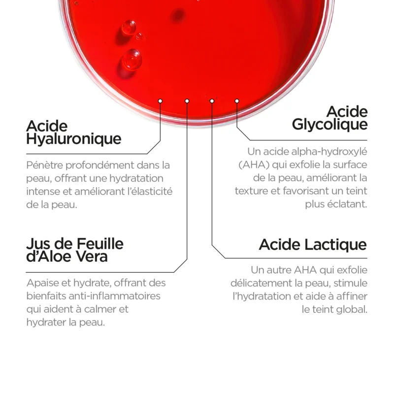 Water / Aqua, Glycolic Acid, Lactic Acid, Aloe Vera Juice / Aloe Barbadensis Leaf Juice, CarrotExtract / Daucus Carota Sativa Root Extract, Betaine Salicylate, Glycerin, Propylene Glycol,Provitamin B5 / Panthenol, Potassium Hydroxide, Phenoxyethanol, Sodium Hyaluronate,Xanthan Gum, Maltodextrin, Citric Acid, Disodium EDTA, Sodium Benzoate, Potassium Sorbate