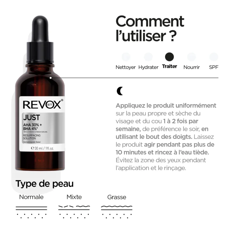 Catégories : All, Améliorer texture, Exfoliant, JUST, Just Exfoliants, Produits, Régénération des cellules, REVOX, Sérums, Unifier le teint