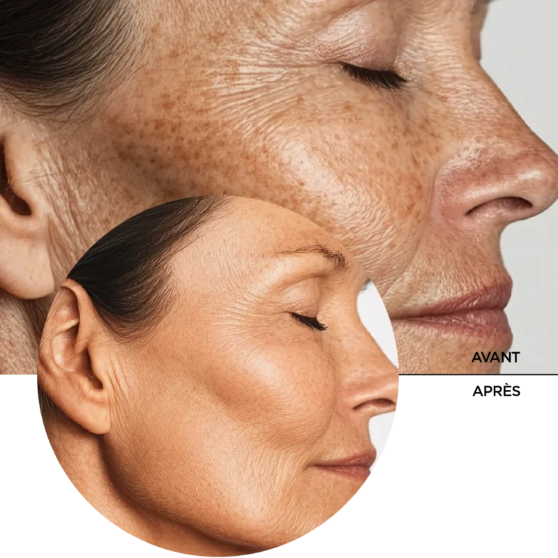 Texture rugueuse de la peau, pigmentation, taches sombres, ridules, rides.