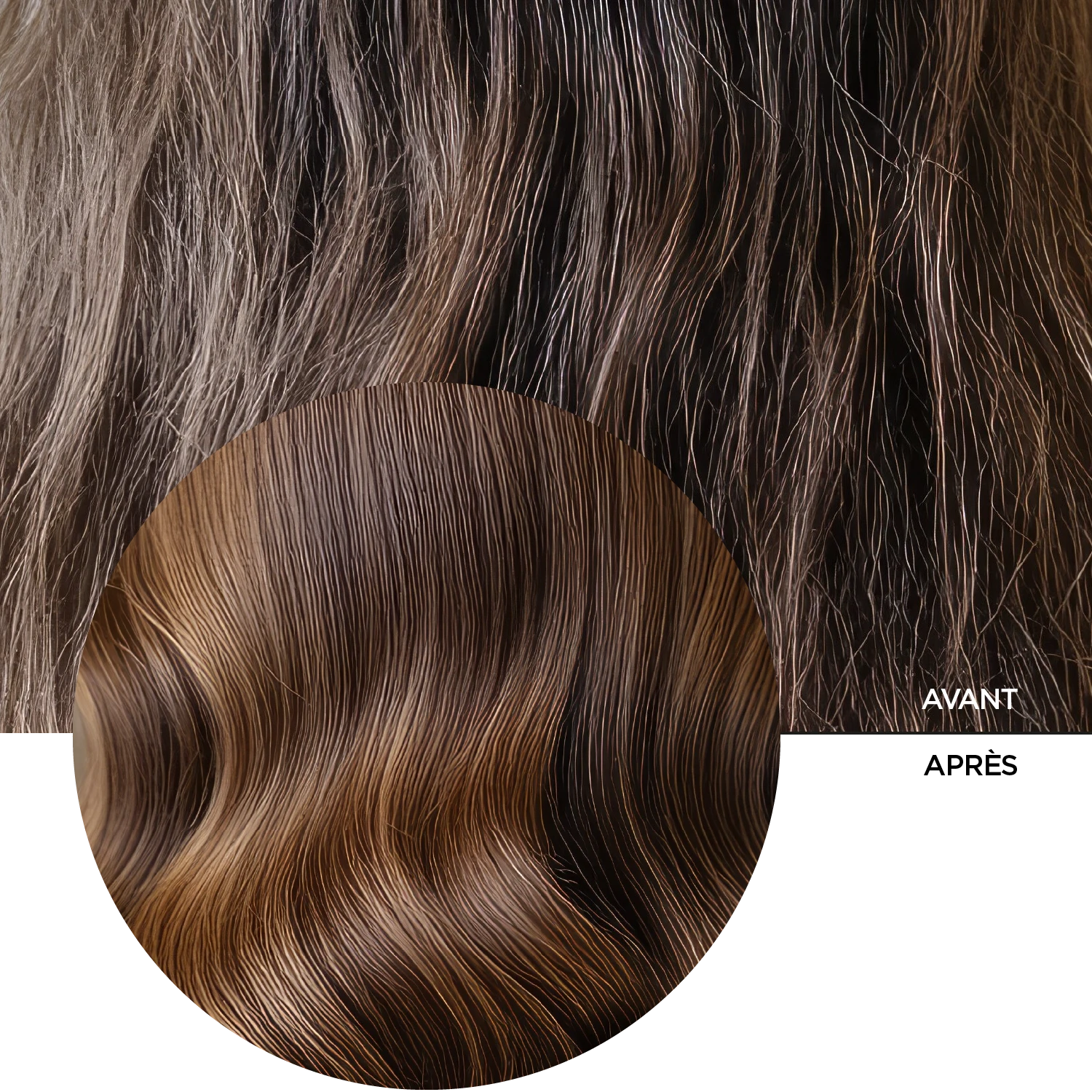 Cheveux abîmés, cheveux colorés, cheveux abîmés par la chaleur, pointes sèches.