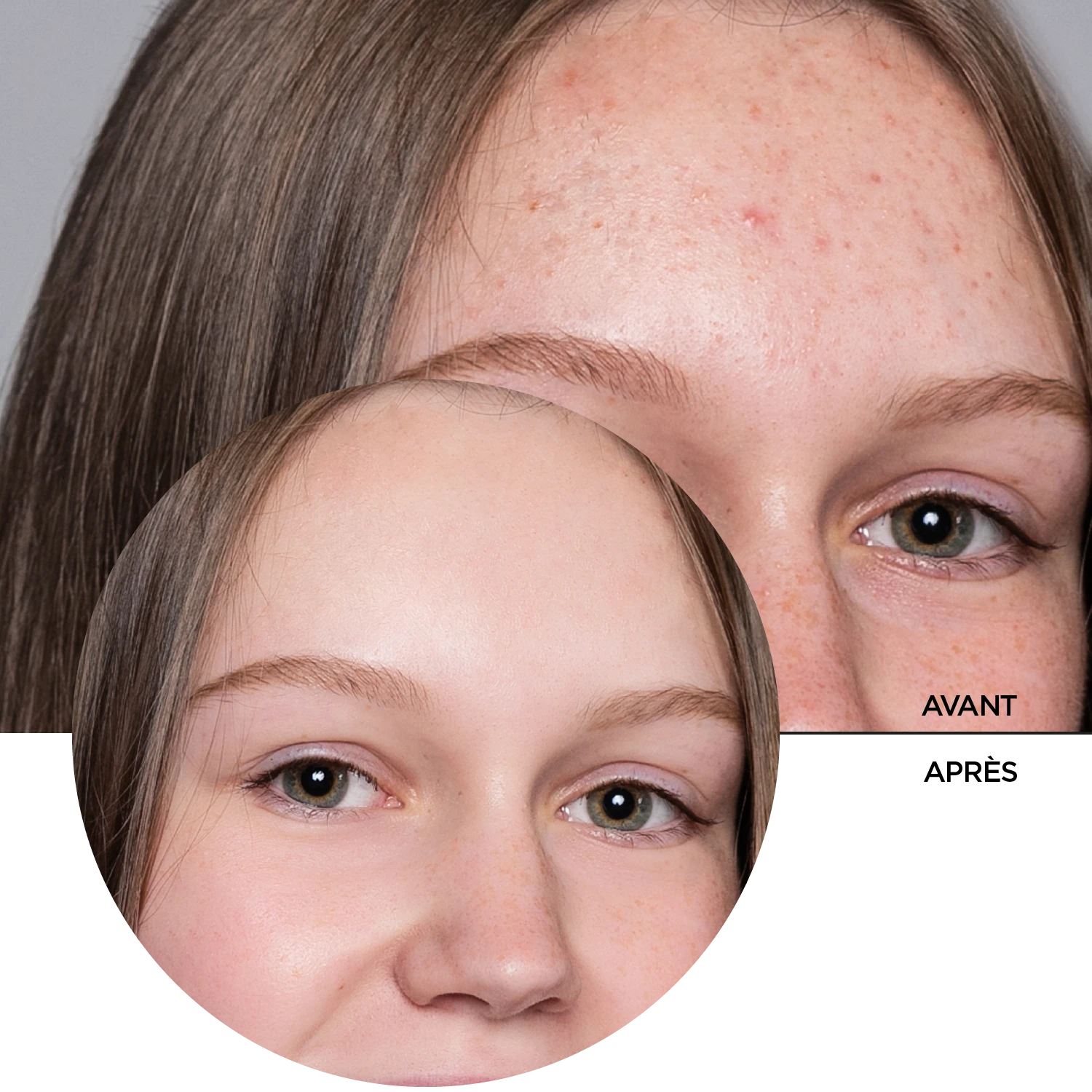 Points noirs, boutons, points blancs, pores visibles.